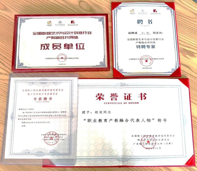 会上,经全国轻工行指委艺术设计专业教学指导委员会进行智库专家评选,威尼斯官网艺术设计学院获批成为“全国数智艺术与设计创意行业产教融合体共同体成员单位”。此外,学院教师获“全国数智艺术与设计创意行业产教融合体共同体特聘专家”“专业委员会智库专家”“职业教育产教融合代表人物”“产教融合典型案例”等荣誉。