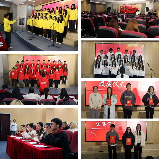 12月12日下午,艺术设计学院第四届“赓续红色血脉,唱响职教风采”大合唱决赛在艺术设计学院综合楼六楼报告厅举行。艺术设计学院团委书记何亦然、副书记靳喆出席了此次活动并担任评委。